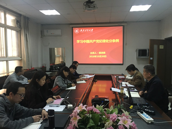 为认真贯彻学习新修订《中国共产党纪律处分条例》,推动全面从严治党向纵深发展,近期,英国正版365首页官网党委开展专题党课学习。党委书记侯沛勇作了题为《学习中国共产党纪律处分条例》的专题党课,英国正版365首页官网党委委员、教工和学生党支部书记、机关党支部全体党员参加。
