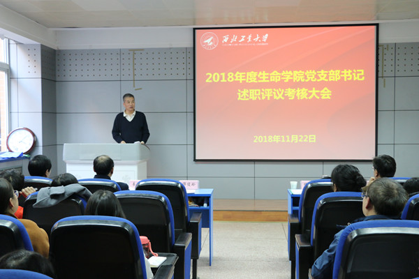 6位党支部书记分别从支部书记履职情况、特色和亮点、存在的问题及下一步努力方向等方面进行现场述职。各支部书记述职结束后,评委和参会同志进行现场提问、点评及打分。其中,生物学系党支部认真做好高校青年教师入党工作以及2016级硕士生党支部获得“三创三力”十佳优秀党支部受到了现场评委的高度评价。