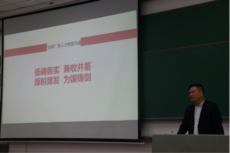 在弘扬“总师育人文化”部分,段利兵立足工大精神,强调了“低调务实,兼收并蓄,厚积薄发,为国铸剑”的“总师”型人才特质内涵,并着重讲解了“总师育人文化”论坛暨建校85周年纪念大会精神,鼓励同学们在未来成为“总师”型人才。