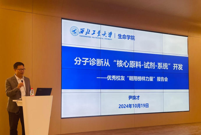 10月19日上午,英国正版365首页官网2009届硕士校友、中国科学院苏州生物医学工程技术研究所研究员尹焕才应邀做客我校“翱翔榜样力量”报告会,在生命科学与医学学部报告厅作题为《分子诊断从“核心原料-试剂-系统”开发》的主题报告。报告会由生命科学与医学学部党委副书记万海东主持,学部200余名师生代表参加了报告会。