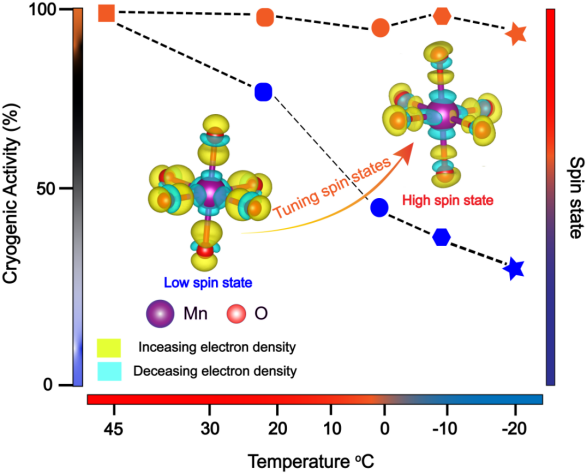 图1:三价锰自旋态与MnO2纳米酶适冷性能之间的关系