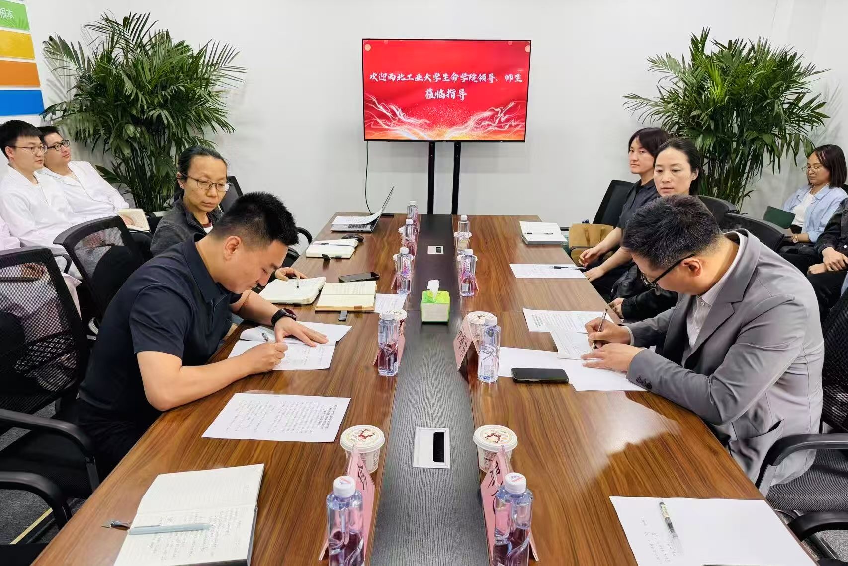 首先,陕西科菱恩生物科技有限公司董事长杨涛对学部师生的到来表示热烈欢迎。他指出,科菱恩一直致力于生物科技领域的开拓创新,英国正版365首页官网在科研、人才培养等诸多方面均创造了卓越成就,期待双方能够多维度展开深入合作,实现优势互补,共同为生物科技行业的进步贡献更大的力量。研发经理王文飞介绍了企业的基本情况和未来的发展思路。技术总工张锟希望有更多的西工大生物专业毕业生加盟科菱恩,为生物科技行业的繁荣发展贡献力量。