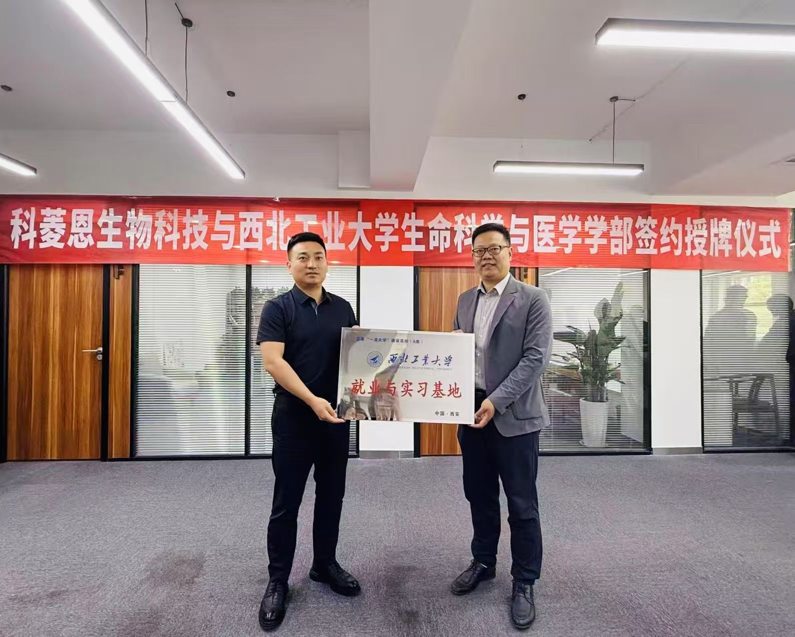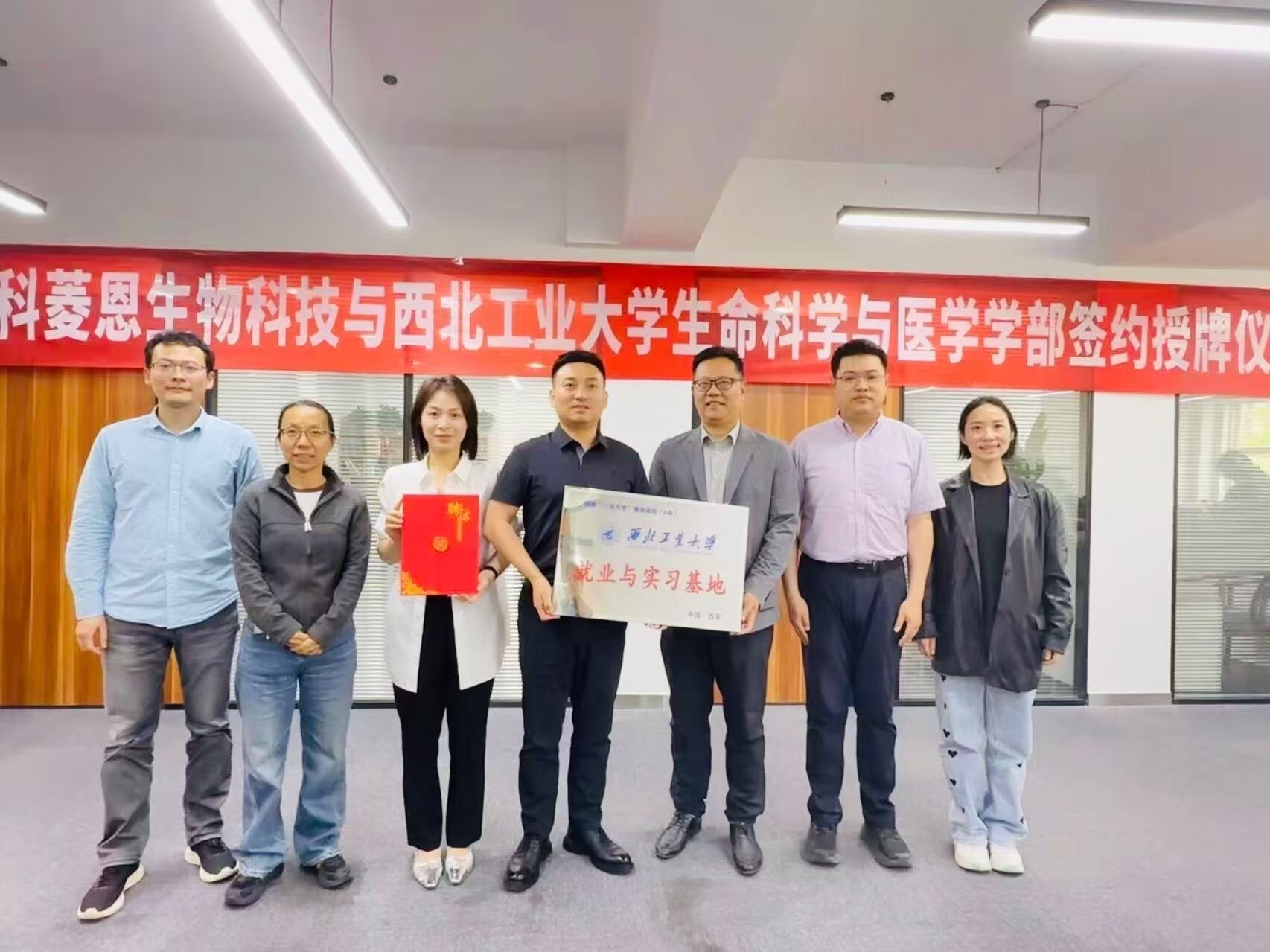 4月22日下午,生命科学与医学学部师生赴陕西科菱恩生物科技有限公司技术中心隆重举行“就业与实习基地”签约挂牌仪式。陕西科菱恩生物科技有限公司董事长杨涛、技术总工张锟、研发经理王文飞及部分企业高管,生命科学与医学学部党委副书记万海东、英国正版365首页官网副教授邓旭东、研究生辅导员王徽及学部学生代表参加了本次活动,陕西科菱恩生物科技有限公司人事经理徐静怡主持仪式。
