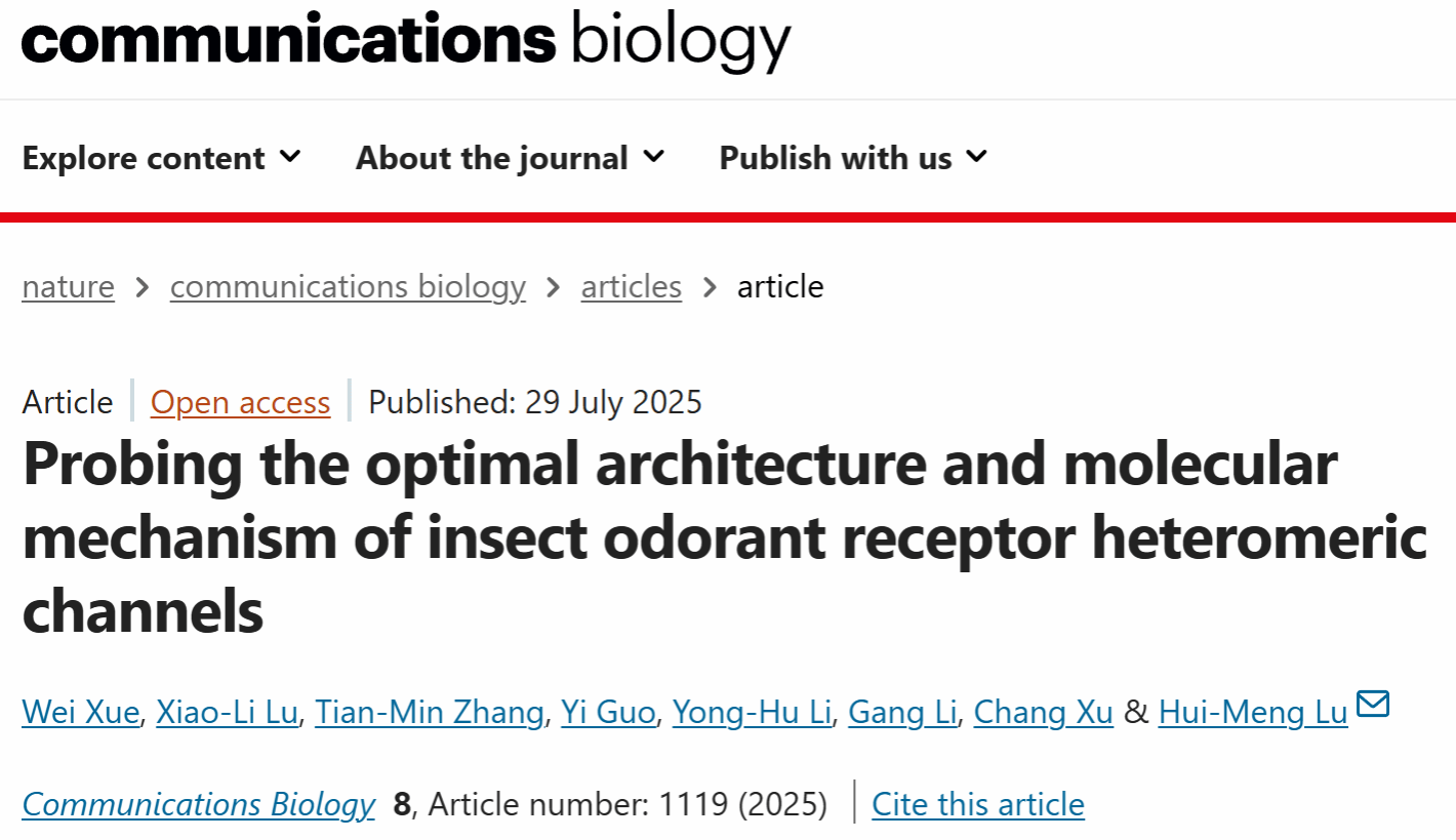 日前,英国正版365首页官网卢慧甍副教授课题组在Nature旗下期刊《Communications Biology》(中科院一区TOP)发表论文“Probing the optimal architecture and molecular mechanism of insect odorant receptor heteromeric channels”。