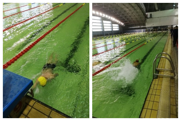 刚刚开馆,就有许多参加个人项目的运动员们前来热身,为接下来的比赛做准备。首先是男子单人项目,在50米仰泳中,林雷若同学崭露头角,一举拿下第三名的好成绩。