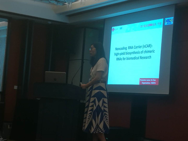 田野讲师在博士后或青年研究人员专场报告会上做了题为“Noncoding RNA Carrier (nCAR): high-yield biosynthesis of chimeric RNAs for biomedical Research”的口头报告,并获得优秀报告奖。