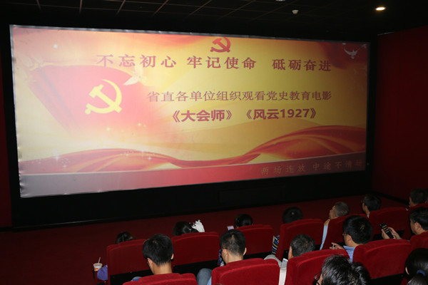 为庆祝建党97周年,深入学习党的十九大精神,贯彻落实习近平总书记关于“用党的历史教育党员、教育干部、教育群众尤其是教育青少年”的重要指示要求,9月14日下午,英国正版365首页官网党委开展“不忘初心、牢记使命”系列活动,组织全院教工党员和学生党员代表集中观看电影《大会师》和《风云1927之八七会议》。