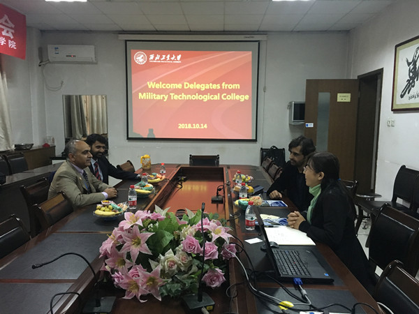 受英国正版365首页官网邀请,阿曼军事技术学院(Military Technical College,MTC)代表团赴我校参加80周年校庆活动。10月14日,MTC教授Abid Ali Khan一行来英国正版365首页官网访问交流。学院副院长骞爱荣教授亲切会见了来宾,学院留学生Raees Fida Swati和外事秘书郭昕参加会见。