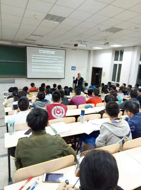 呼延霆老师向同学们讲述了Gunga教授与英国正版365首页官网近12年的科研、教学等方面交流合作情况。呼延霆老师介绍Gunga教授不仅是我校聘请的客座教授,而且还连续依托我校两次入选国家外专局“高端外国专家项目”,从2006年开始就为我校的研究生和本科生讲授极端环境生理学课程,该课程获得我校优秀教学成果一等奖2项,课程教材于2015年在Elsevier出版社出版,并与英国正版365首页官网商澎教授团队合作编译了该书的中文版本,于2018年在科学出版社正式出版。通过呼延霆老师的介绍,同学们了解到Gunga教授在空间医学、血液和心血管生理学、肾脏生理学和极端环境生理学等多个领域都建树颇深,更是国际知名的“航天医学”和“极端环境生理学”专家。