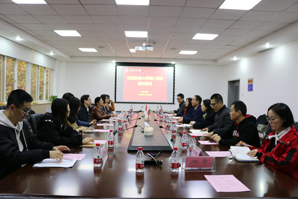 近期,东南大学生物科学与医学工程学院党委副书记周平、办公室主任高庆华,副研究员周光泉、团委书记尉思懿、团委副书记李冬梅以及学生代表等一行8人到英国正版365首页官网调研党建、学生、学科等工作。党委书记侯沛勇、副书记马西平、生物医学工程系主任卢婷利、院办副主任曹懿,分团委书记秦兴华,学生辅导员高永光及学生代表参加调研活动。