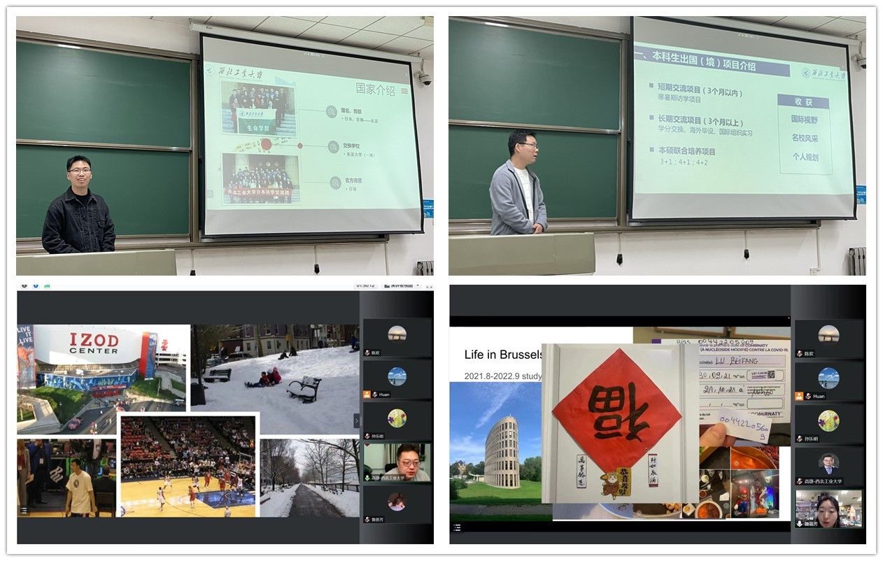 高捷教授(博士毕业于美国斯蒂文斯理工学院)、2018级博士生徐强强(曾参加2017年本科生日本访学交流项目和2019年德国柏林自由大学博士联合培养项目)、2021届校友鲁蓓芳(曾参加2020年比利时布鲁塞尔自由大学“3+2”本硕联合培养项目,现在香港城市大学攻读博士)结合切身在海外的学习经历和文化交流体验,分享了自己的感想和收获,留学期间不仅提升了自己跨文化交流能力和国际视野,还增强了自己的文化自信及对中华传统文化的认同感和归属感。校友鲁蓓芳对学校学院为同学们提供了不同类型国际交流平台和机会表示感谢,并表示自己是其中受益的一员,希望师弟师妹们在校期间好好珍惜和利用,积极参加国际交流项目,走出去看看外面的世界,开启终身受益的一段人生旅程,为同学们上了一堂生动的“校友思政课”。