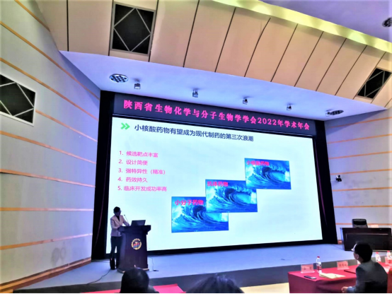 会议上骞爱荣教授以“重组小核酸生物合成技术”为题做了精彩的报告。骞爱荣教授团队在重组小核酸领域研究多年,已研发出一种新型小RNA生物合成技术,该技术以tRNA为支架,嵌合miRNA前体,在大肠杆菌中表达目标小RNA,具有设备简便、生产快速、产量高、成本低、功能性好等优势。生物合成小核酸具有安全性好,得率高,可大规模生产带有天然修饰等诸多优点,在未来小核酸药物的研发和生产上将发挥重要作用。