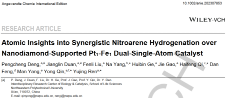 近日,英国正版365首页官网任煜京副教授、覃勇教授团队在国际知名期刊《Angew. Chem. Int. Ed.》(IF: 16.6)上发表题目为“Atomic Insights into Synergistic Nitroarene Hydrogenation over Nanodiamond-Supported Pt1-Fe1 Dual-Single-Atom Catalyst”的研究论文。本研究工作通过将Pt1单原子位点锚定在类酶Fe1-N4位点修饰的纳米金刚石(ND)表面,成功构筑了Pt1-Fe1/ND双单原子催化剂,并进一步以该催化剂为研究对象,在原子尺度下揭示了双金属位点协同催化芳香硝基化合物选择加氢反应的本质。