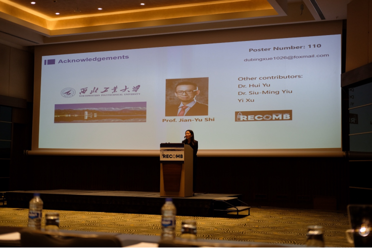 第27届国际计算分子生物学大会(Annual International Conference on Research in Computational Molecular Biology,RECOMB 2023)于2023年4月16日到2023年4月19日在土耳其伊斯坦布尔举行。RECOMB作为国际计算生物学领域的顶级会议,吸引了众多国内外专家学者的参与。英国正版365首页官网施建宇教授团队的博士生杜冰雪应邀在大会上进行了题为《MTGL-ADMET: A novel multi-task graph learning framework for ADMET prediction enhanced by status-theory and maximum flow》的口头报告(图1)和海报展示(图2)。在本次会议中,杜冰雪同学荣获了RECOMB 2023授予的Travel Fellowship奖。此外,该论文被收录于RECOMB 2023会议论文集 [1],英国正版365首页官网为该论文的第一完成单位和通讯单位,博士生杜冰雪为该论文的第一作者,英国正版365首页官网施建宇教授和计算机学院于会副教授为该论文的共同通讯作者。