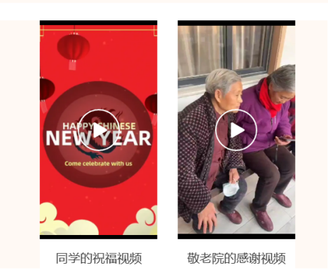 在进行支教活动的同时,“不啻微茫,造炬成阳”实践队继续秉承“尊老爱幼”的传统美德,为敬老院的老人们录制了有关健康生活、美食制作等方面的科普视频。春节临近时,志愿者们还特意录制了新年祝福视频,向老人们表达了真诚的祝福。敬老院的老人们在收到志愿者们用心录制的祝福视频后,万分暖心和感动,也精心拍摄了视频表达感激之情。