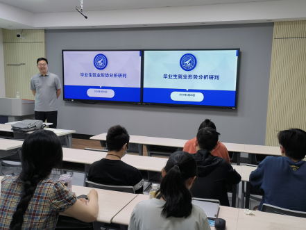 会议开始,万海东向同学们一一了解了目前的就业意向,他从当前行业整体状况、历年毕业生规模、企业人才供需、就业环境等多方面做了就业形势分析;鼓励同学们积极行动,做好就业准备,多渠道了解就业信息,根据不同招聘企业和岗位做好对应的简历制作,理性调整就业心态,积极提升就业竞争力。