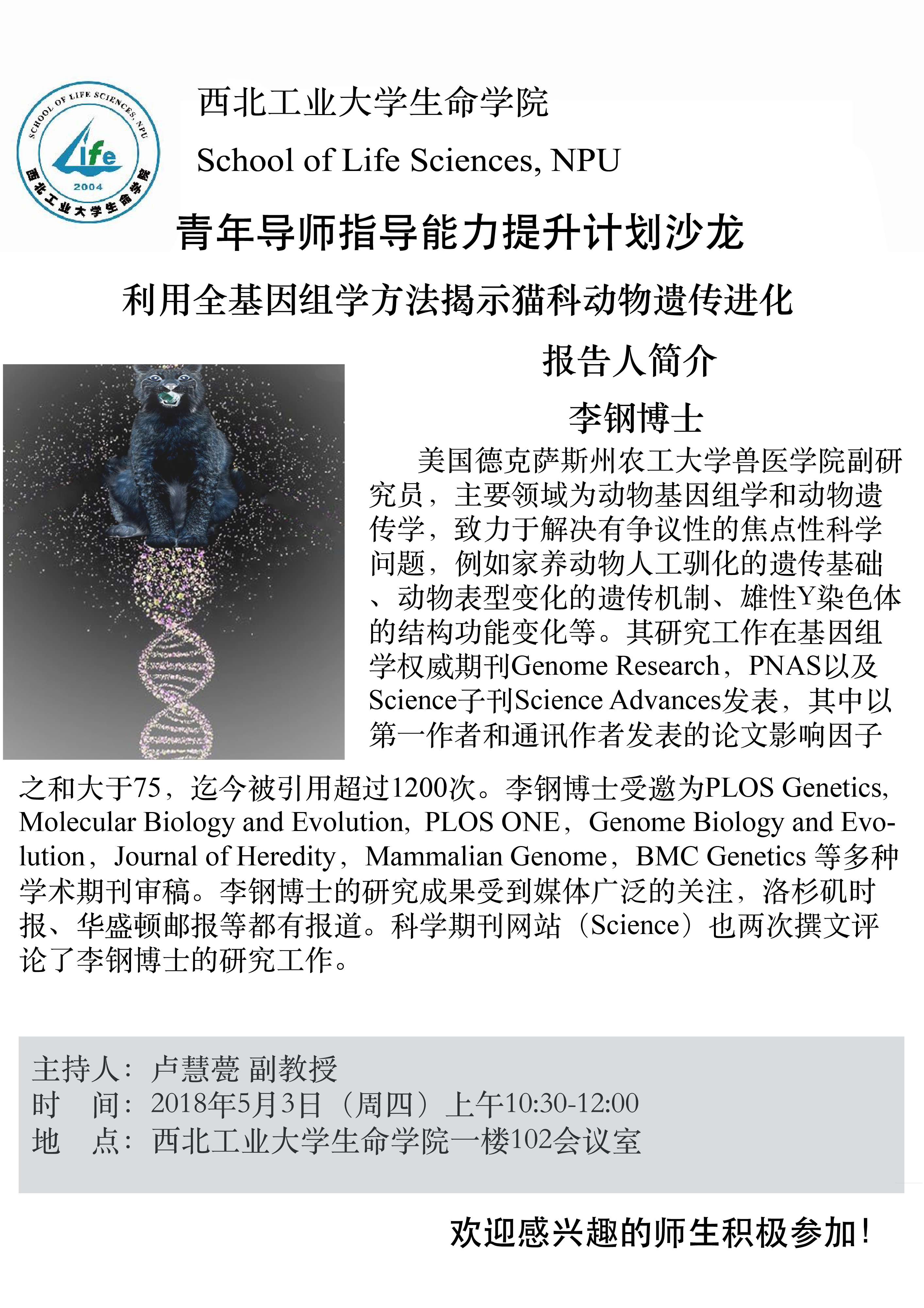 报告题目:利用全基因组学方法揭示猫科动物遗传进化