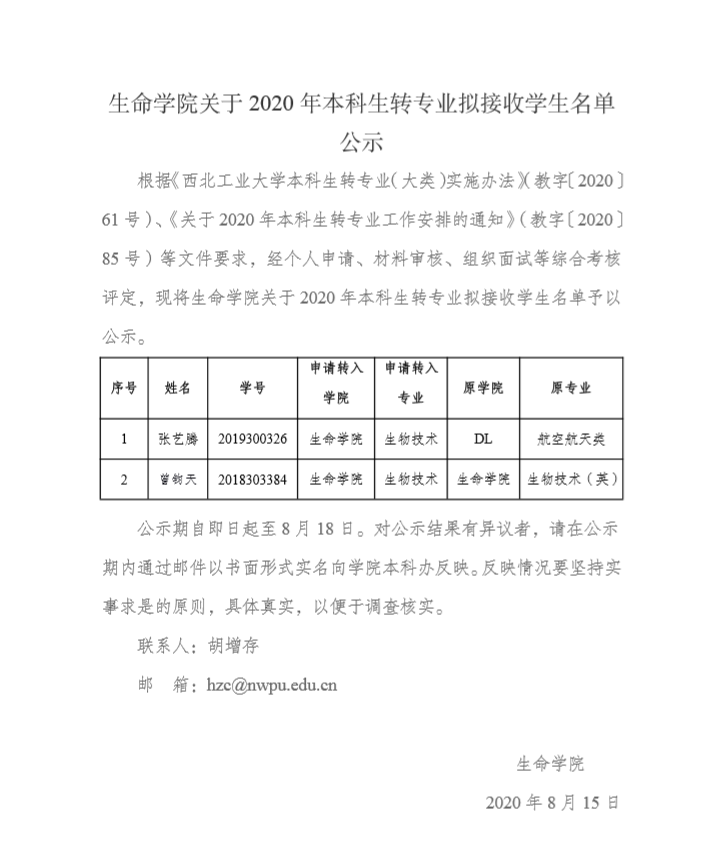 英国正版365首页官网关于2020年本科生转专业拟接收学生名单公示